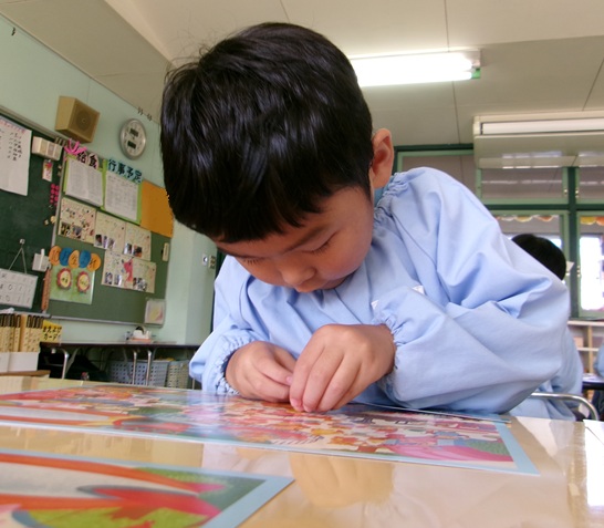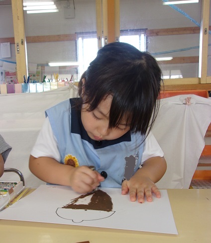 外遊びでどんぐりを集めをすることが好きな子ども達。 『どんぐりむら』の絵本を見た後にどんぐり何して遊んでいる?をテーマに絵を描きました。 「...