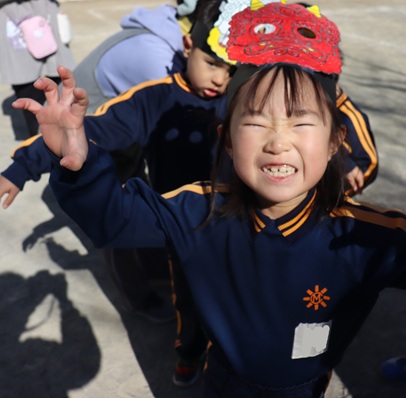 今日は節分でした。 子ども達は赤鬼や青鬼がやって来て 「おには外、福はうち」と声を出して楽しそうに豆を投げていました。 お部屋に戻ってからは...