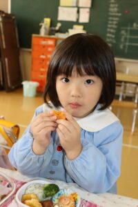 子ども達は先生と一緒に収穫をし、お弁当の時間に食べ「おいしい」と話していました。