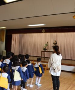 始業式でした。子ども達は園長先生の話から3学期の始まりを知りました。冬休みに雪が降ったことやお正月の挨拶をしたことなど冬休みにあったことを話す子ども達の姿が見られました。