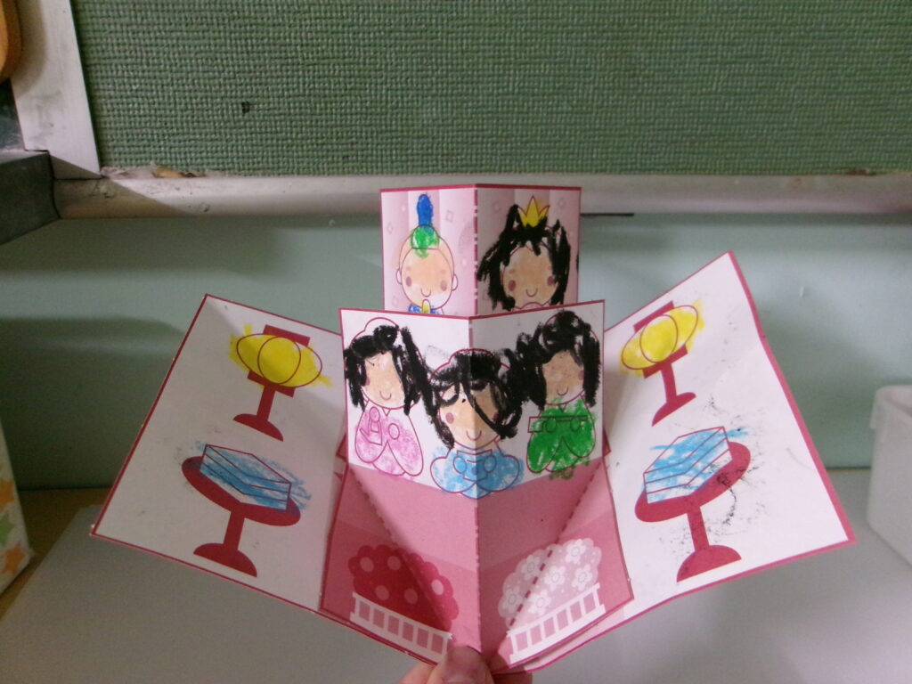 今日は、月刊絵本の付録についているひな祭り製作をしました。