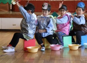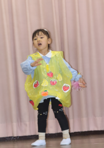 表現発表会がありました。発表会前には「ダンスが楽しみ」「全部が楽しみ」と話していました。お面や衣装を身につけて、劇や合奏、ダンスを楽しむ姿が見られました。発表会後、「楽しかった」と話す子ども達でした。本日はお越し頂き、ありがとうございました。