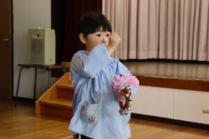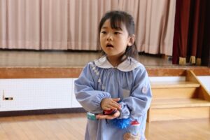発表会で、合奏をする子ども達。自分の好きな楽器を選び、ピアノに合わせて合奏をします。お家の方に見てもらうことを楽しみにしています。