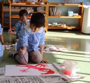 「流れるプールをしている」や「テレビを見ているよ」と話し、楽しんで描く子ども達の姿が見られました。
