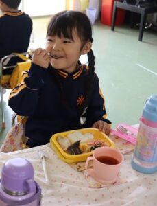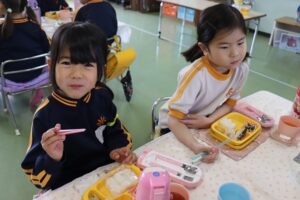 今年度、最後の給食を食べました。教師が「次に給食を食べる時は、学年がひとつ上になっているね」と声をかけると、「楽しみだな」と話す子ども達でした。