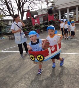 前と後で走るよりも横に並んだ方が走りやすいことに年上の友達が気が付く姿や、違う学年の友達と一緒に行うことの楽しさを知ることができました。