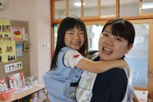 また、先生に抱っこしてもらって、インディアンに抱っこしてもらうことを楽しみにしている子ども達でした。