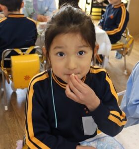 「おには外、福はうち」と声を出して楽しそうに豆を投げていました。