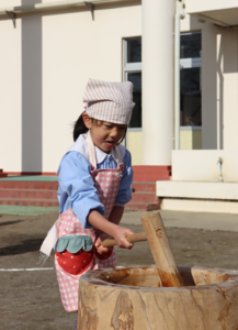 自分でやりたい大きさの杵を選び、一生懸命餅をつく姿がありました。