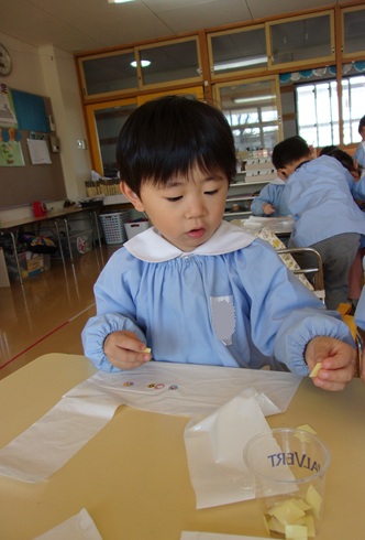 アート展に向けて製作活動を行いました。 年少の友達も年上の友達から作り方も教えてもらい、テープを貼ったりハサミで折り紙を切ったりしました。 ...
