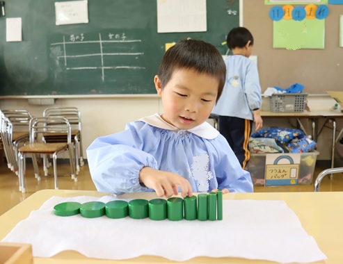 色々な教具に興味をもつ子ども達。 『感覚』のお仕事の『色付き円柱』や『色板』のお仕事に取り組んでいました。 最後まで行うことが出来ました。 ...
