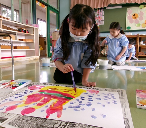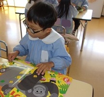 ひなまつり製作を行いました。好きな折り紙を選んで、お内裏様とお雛様の服を作りました。教師と共に折り紙を楽しんだり、完成した服をお人形に貼った...